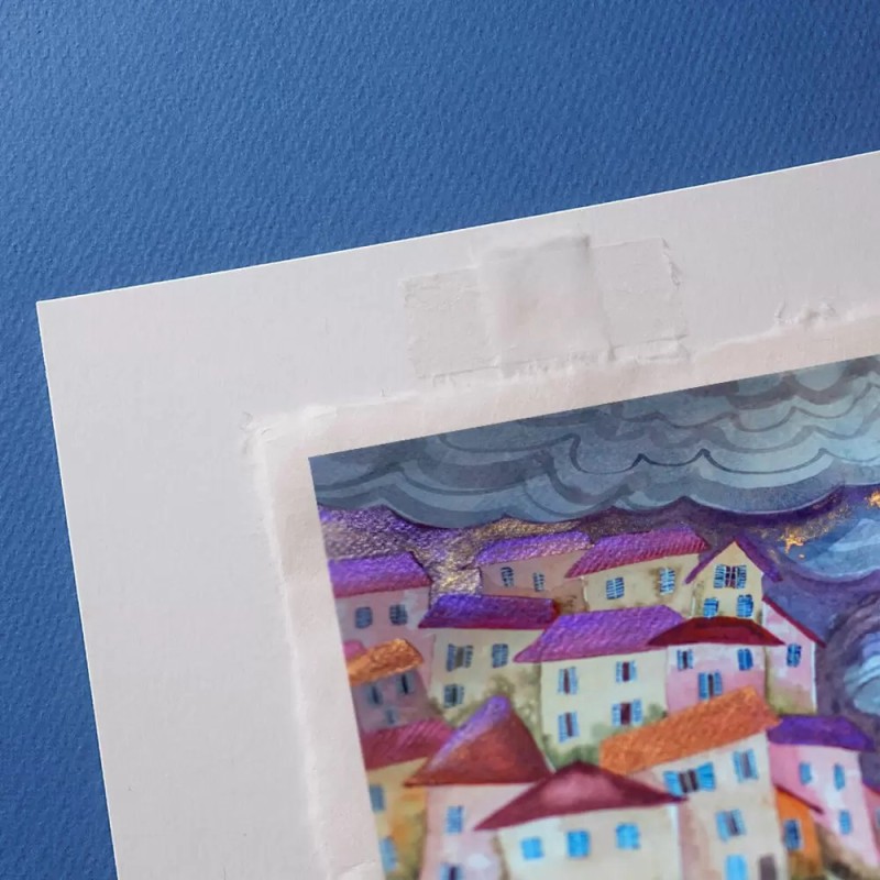 - Apply one half of the tape to the backing/support and the other half to the artwork, pressing firmly
