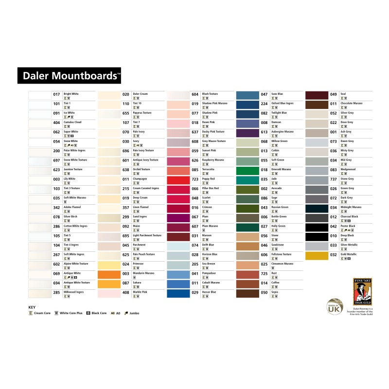 Daler-Rowney White Core Mountboards are manufactured in the UK to meet the specifications and standards of the Fine Art Trade Guild. Acid-free and pH-neutral, they ensure the longevity and preservation of your artwork.