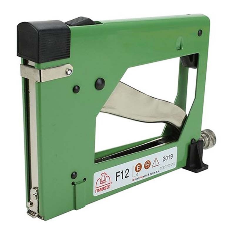 - Grampeador metálico, dispara pregos sem cabeça horizontalmente.