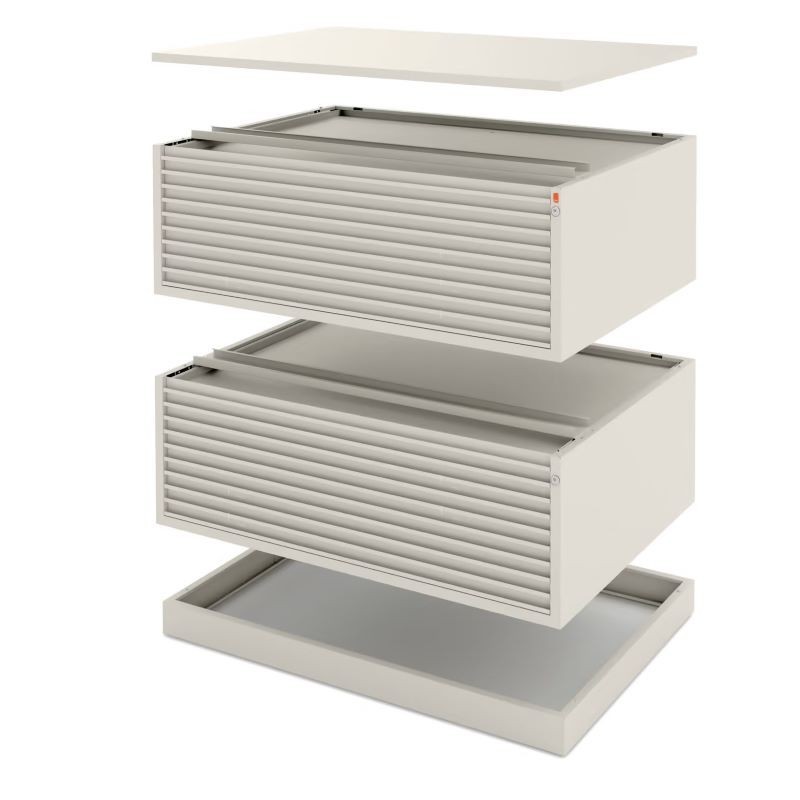 - Composto por dois módulos de 10 gavetas, tampa e rodapé